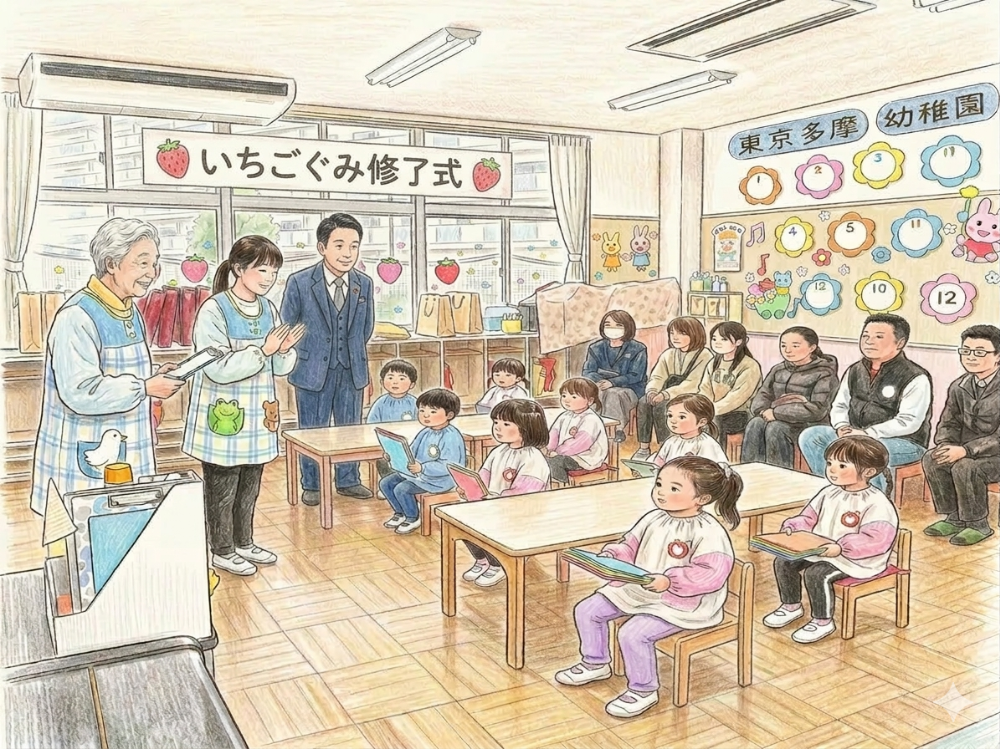 いちごぐみ修了式イメージイラスト。素敵な式でした。
